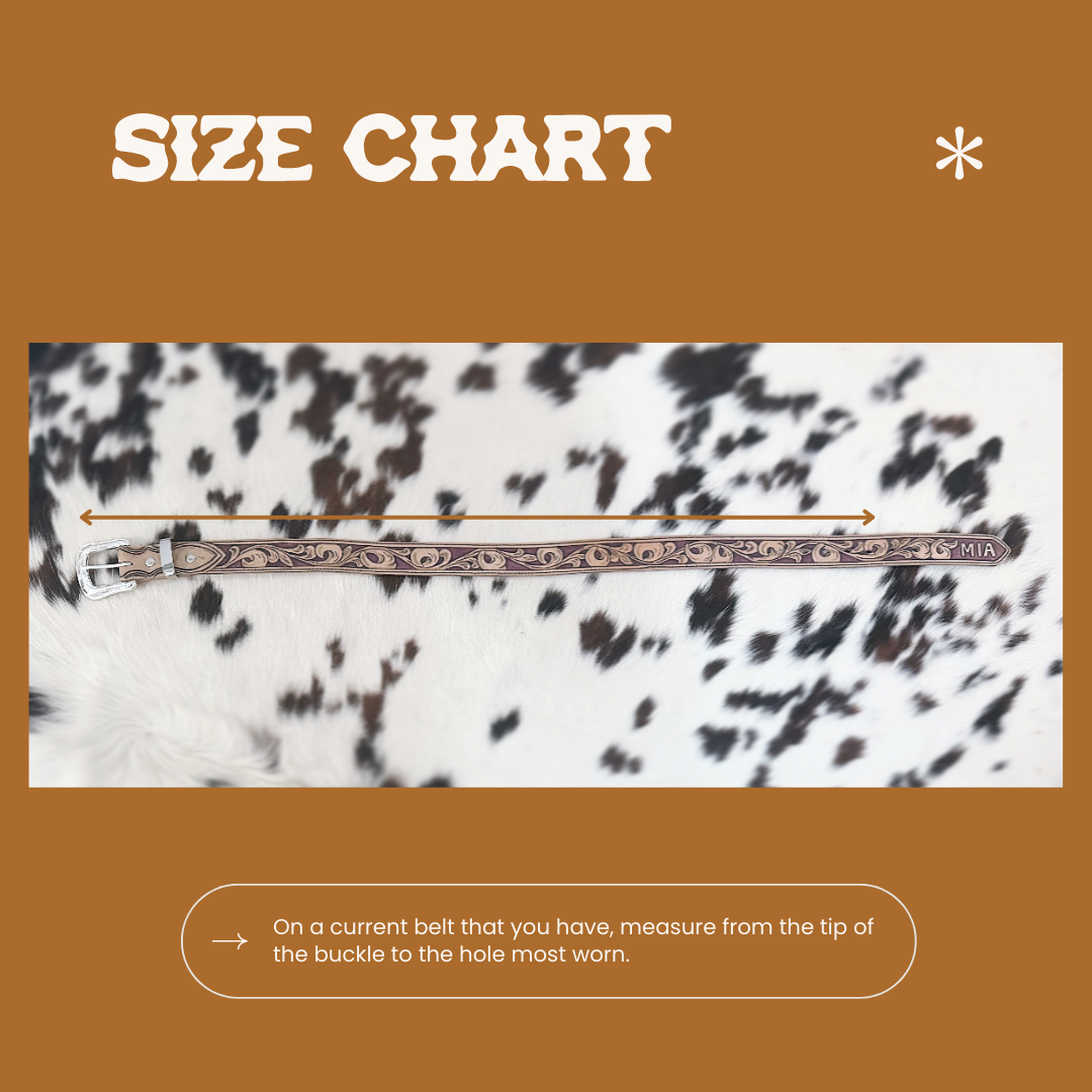 For accurate belt sizing, consult the size chart below. Should you have any inquiries or need clarification, we kindly ask that you contact us prior to placing your order.